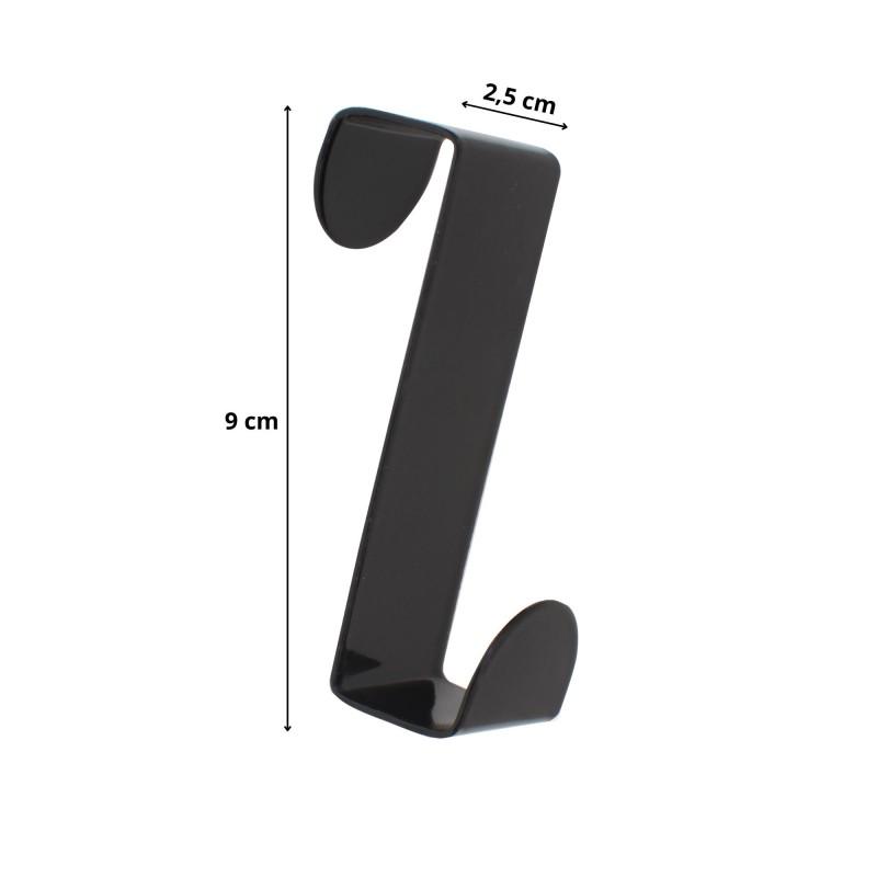 Zestaw dwóch wieszaków wykonanych ze stali malowanej. Praktyczne haczyki zawieszane na drzwi, nie wymagające skomplikowanego montażu. Wystarczy nałożyć haczyk na górną cześć skrzydła drzwi (pasuje na drzwi o maksymalnej grubości: 2,2 cm). Stanowią praktyczny dodatek do łazienek urządzonych w nowoczesnym