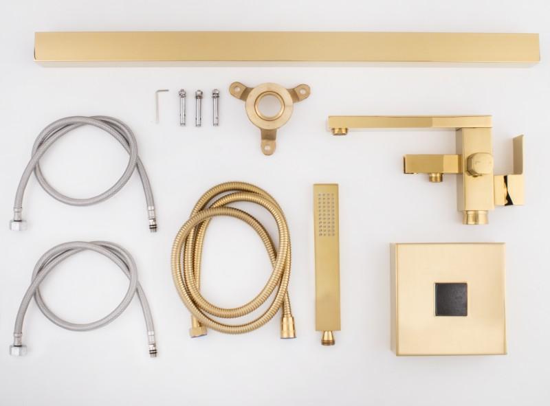Wysokiej jakości bateria wannowa z kompletem natryskowym w stylu minimalistycznym.