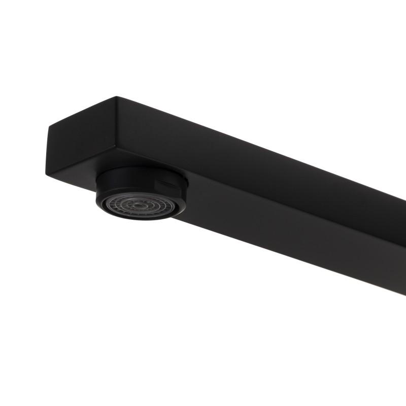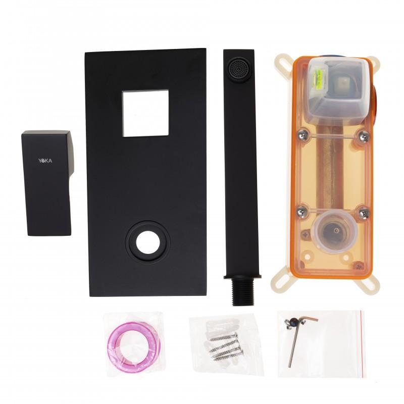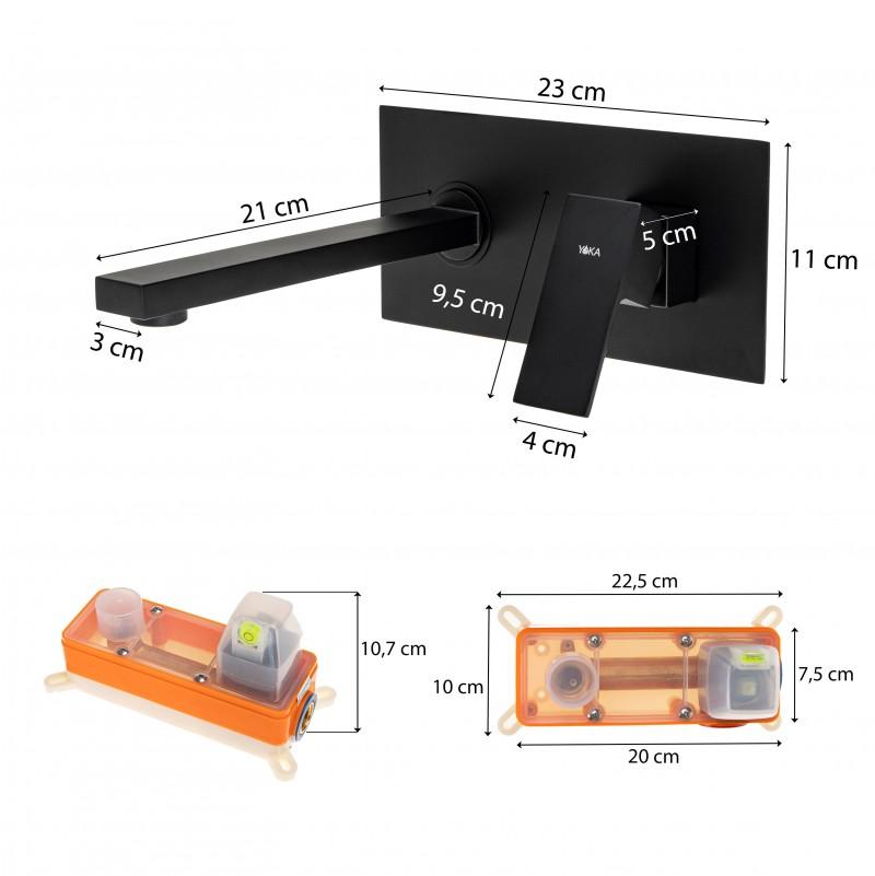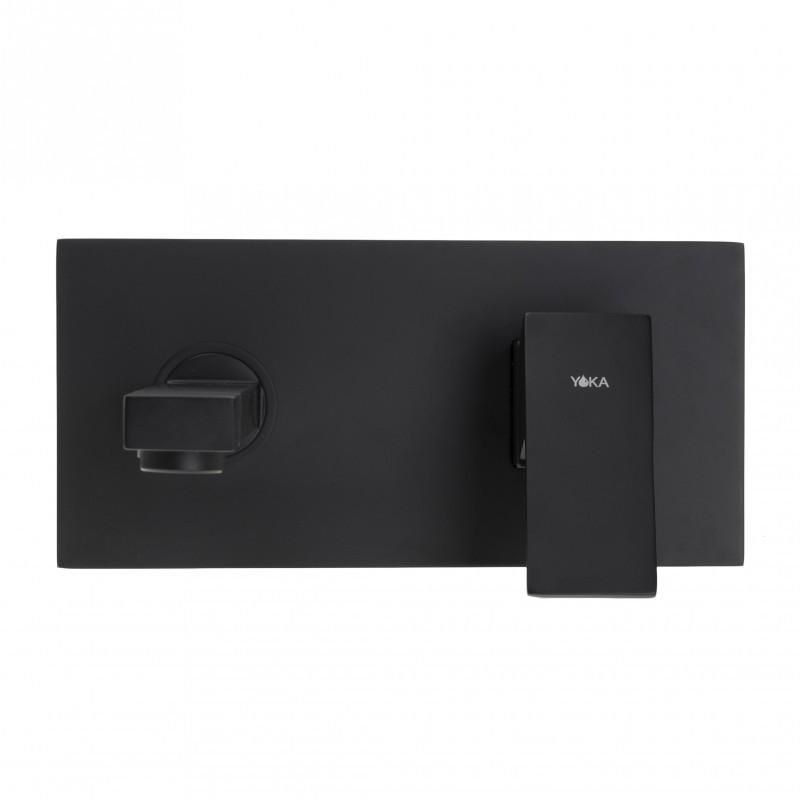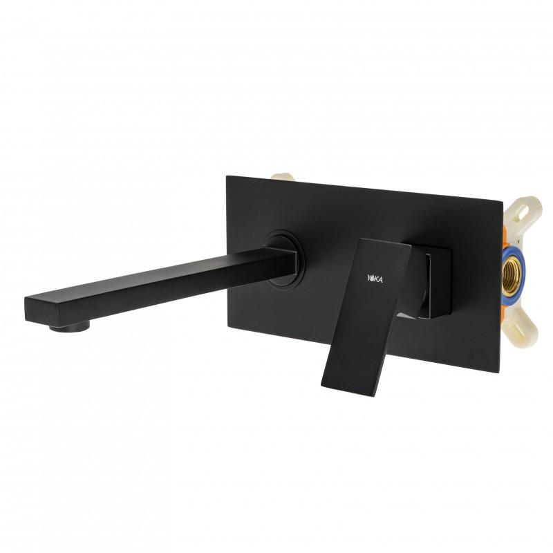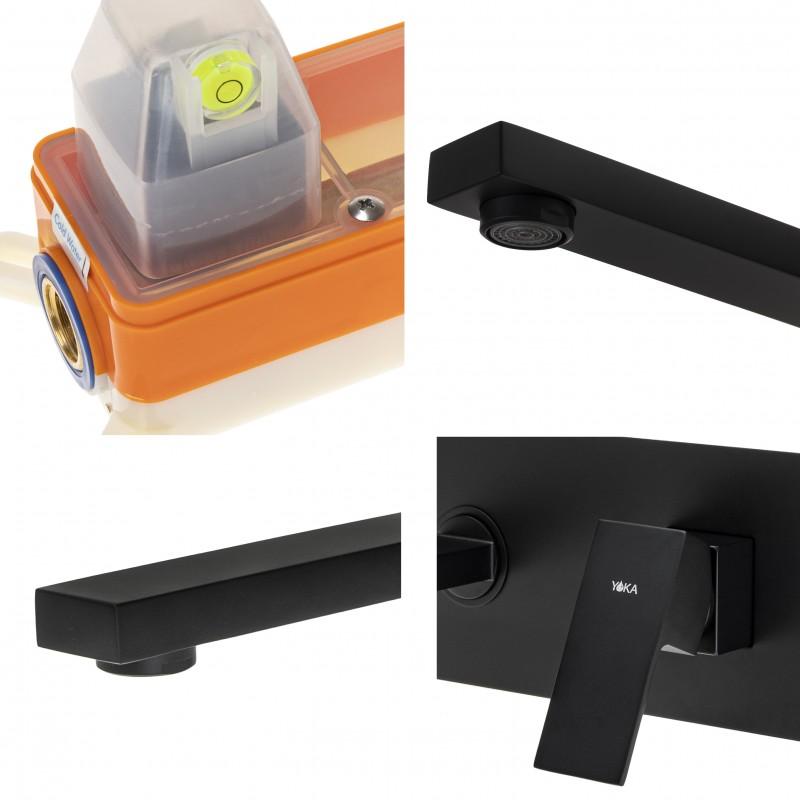 Podtynkowa bateria umywalkowa ścienna w kolorze czarnym. Bardzo solidna, ciężka i trwała bateria jednouchwytowa. Korpus baterii został wykonany z mosiądzu. Głowica baterii jest ceramiczna, co gwarantuje długie, bezawaryjne użytkowanie.
