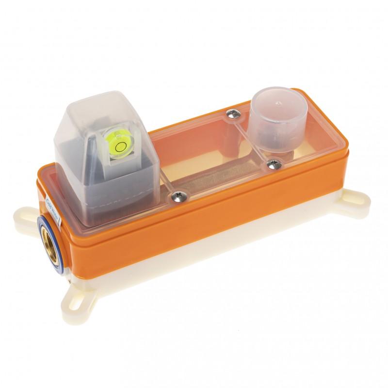 W zestawie znajduje się wysokiej jakości podtynkowy box do przyłączenia wody umożliwiający precyzyjny montaż panelu zewnętrznego na płytkach ceramicznych.