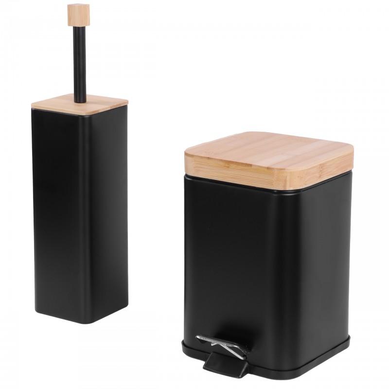 Cały komplet wykonany jest z wysokiej jakości stali malowanej proszkowo na kolor czarny z elementami z naturalnego drewna bambusowego.