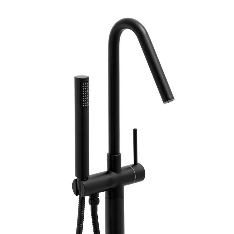 Mechaniczna bateria wannowo-prysznicowa, wolnostojąca, jednouchwytowa z obrotową wylewką. Zarówno 35 mm głowica ceramiczna jak i perlator oszczędzają nawet do 40% wody. Zestaw zawiera 2 wysokiej jakości wężyki w oplocie ze stali nierdzewnej o długości 80 cm z przyłączem 1/2 cala, 1 wąż pleciony prysznicowy 150 cm F 1/2 oraz komplet akcesoriów do montażu baterii. Design baterii został podporządkowany najnowszym trendom - prezentuje się niezwykle elegancko i idealnie pasuje do nowocześnie urządzonej łazienki.