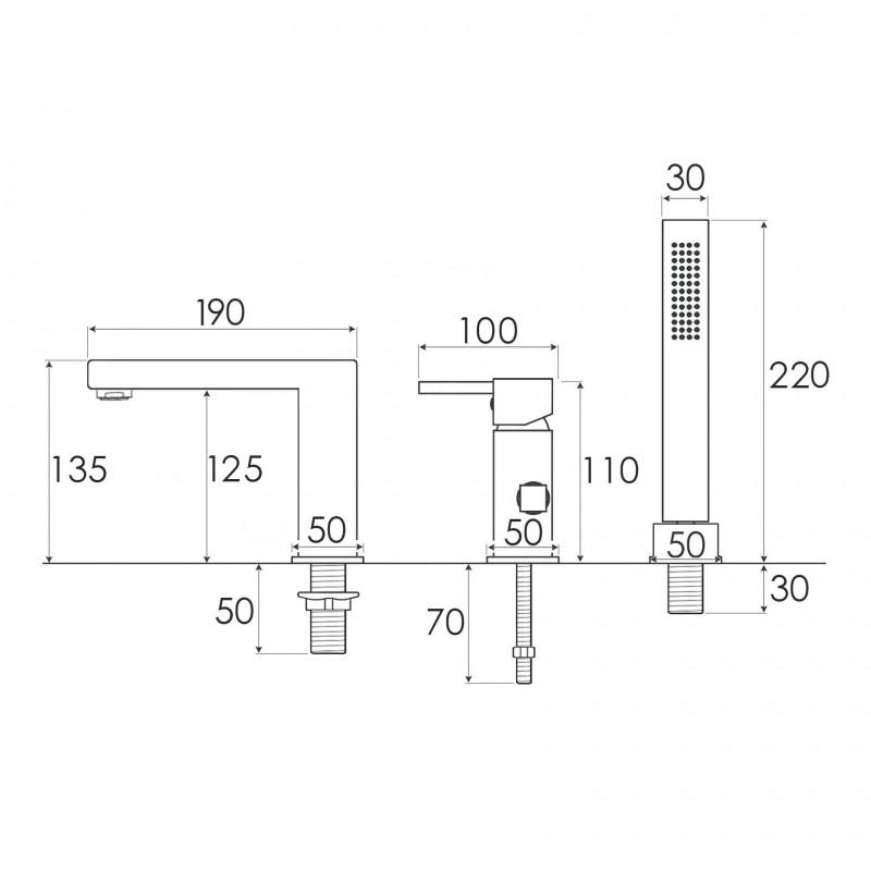 Rodzaj zestawu: Wannowy 3-otworowy, jednouchwytowy, z przełącznikiem i słuchawką prysznicową