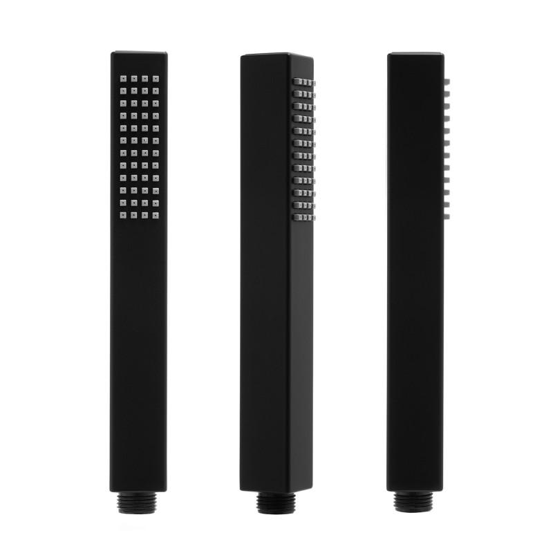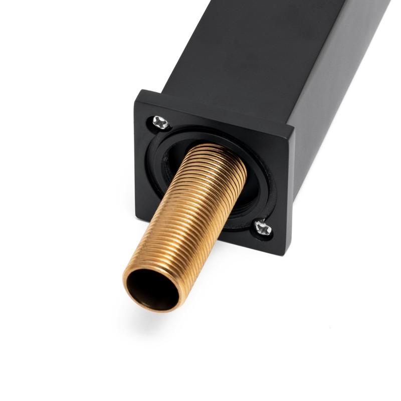 Nowoczesny zestaw z baterią wannową oraz słuchawką prysznicową w czarnym, matowym kolorze. Zawiera baterię mechaniczną z przełącznikiem strumienia wody wylewka / słuchawka, sztywną wylewkę oraz zestaw natryskowy ze słuchawką prysznicową i wężem 150 cm. Zarówno 35 mm głowica ceramiczna jak i perlator oszczędzają nawet do 40% wody. Zestaw zawiera 2 wysokiej jakości wężyki w oplocie ze stali nierdzewnej o długości 50 cm ze standardowym przyłączem 3/8 cala oraz jeden z przyłączem 1/2 cala. Design zestawu został podporządkowany trendom na rok 2021 - prezentuje się niezwykle elegancko i idealnie pasuje do nowocześnie urządzonej łazienki.