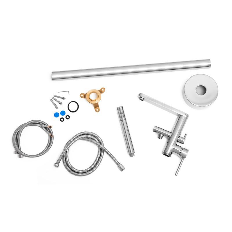 Zestaw zawiera 2 wysokiej jakości wężyki w oplocie ze stali nierdzewnej o długości 80 cm z przyłączem 1/2 cala, 1 wąż pleciony prysznicowy 150 cm F 1/2 oraz komplet akcesoriów do montażu baterii.