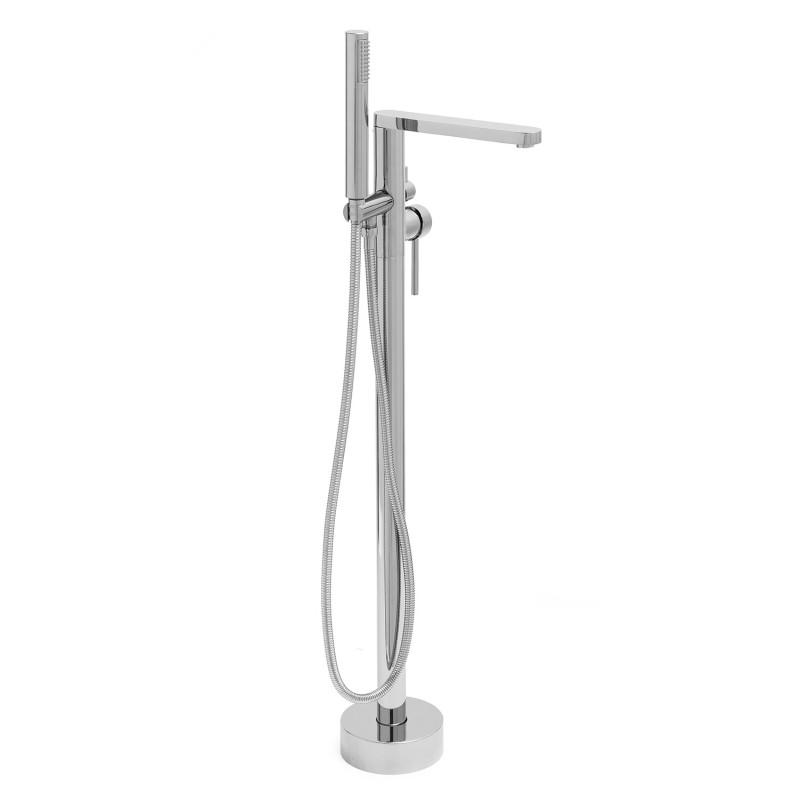 Mechaniczna bateria wannowo-prysznicowa, wolnostojąca, jednouchwytowa z obrotową, sztywną wylewką z przełącznikiem. Zarówno 35 mm głowica ceramiczna jak i perlator oszczędzają nawet do 40% wody.