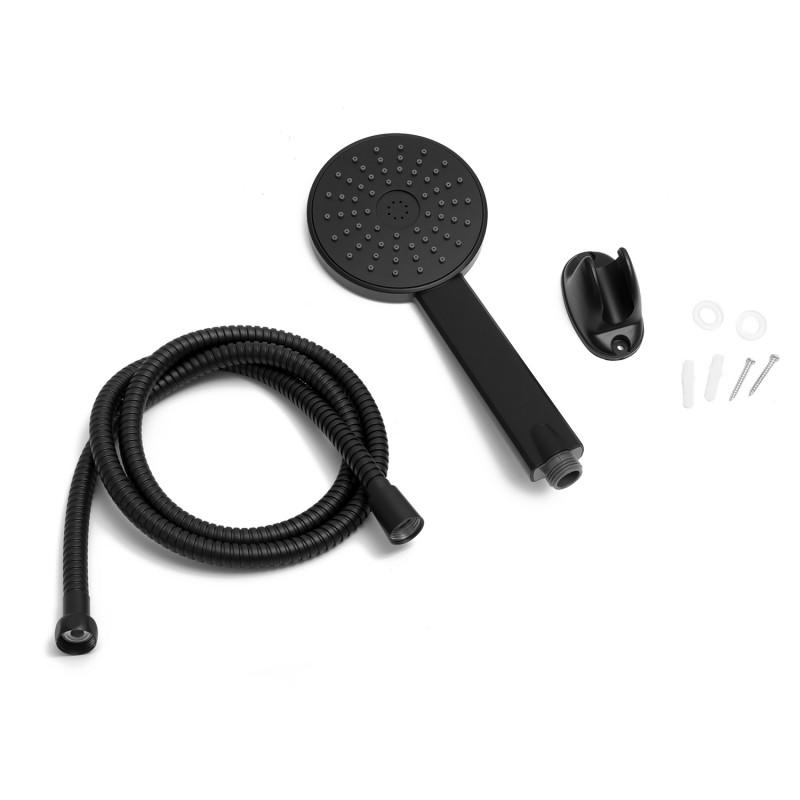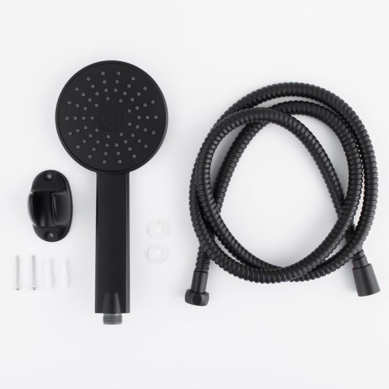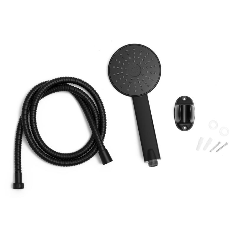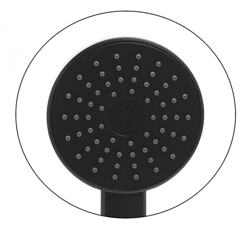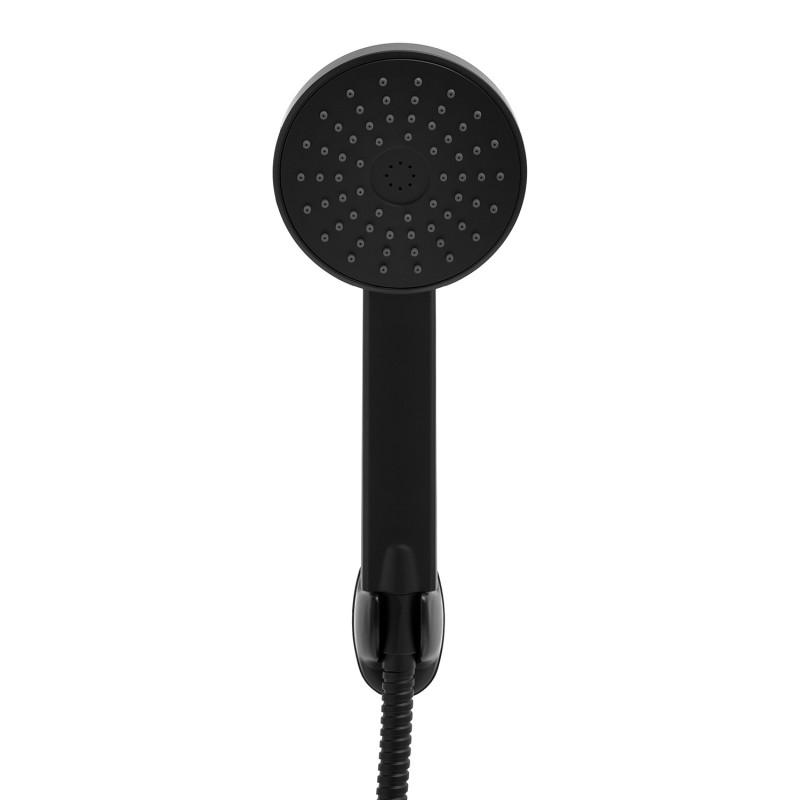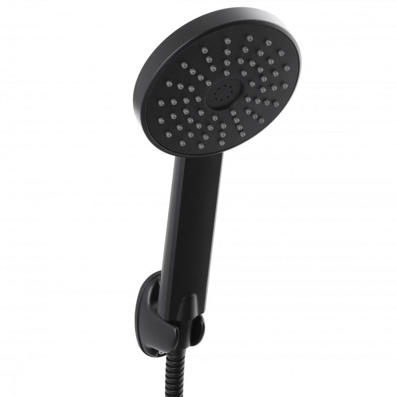 Jednofunkcyjna, okrągła słuchawka prysznicowa w zestawie z wężem oraz uchwytem ściennym. Wykonana została z twardego i wytrzymałego tworzywa, malowanego proszkowo na kolor czarny.