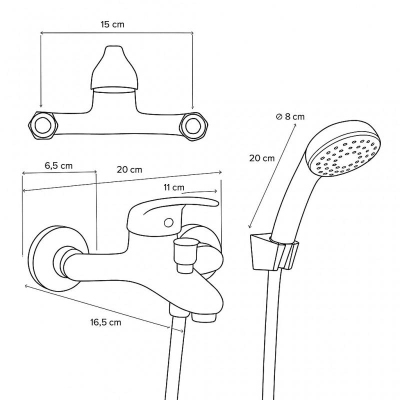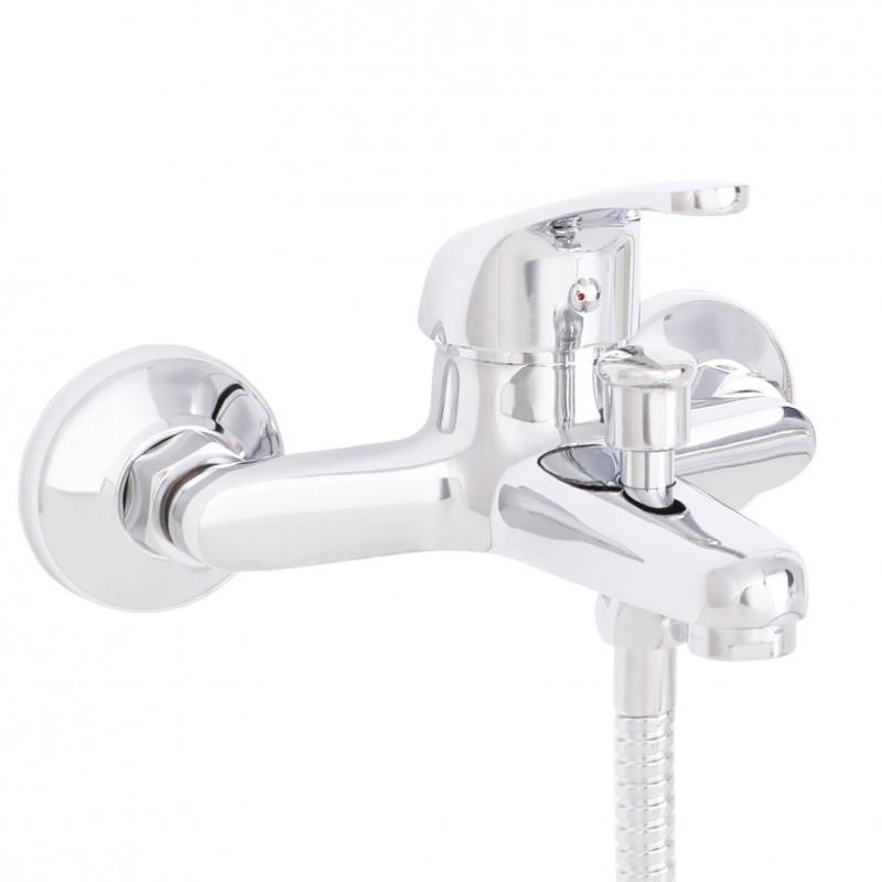 Rodzaj baterii: Wannowo-prysznicowy, ścienny, jednouchwytowy, dwuotworowy, z przełącznikiem i słuchawką prysznicową