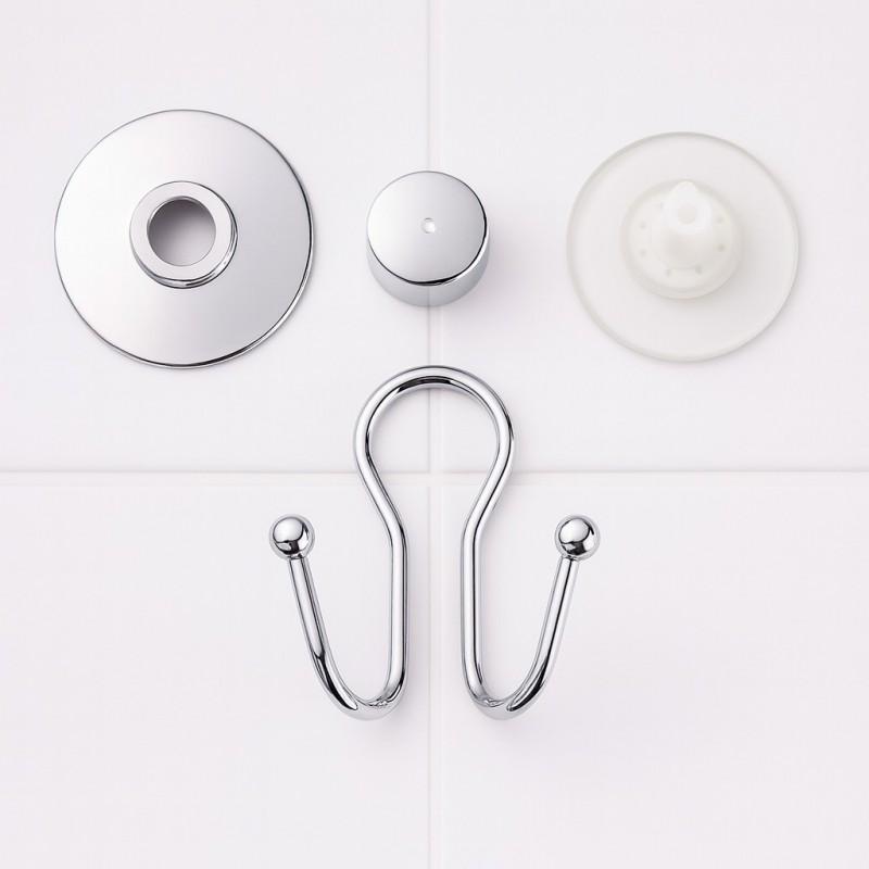Wieszak łazienkowy z podwójnym haczykiem mocowany do ściany na przyssawkę. Wykonany z wysokiej jakości chromowanej stali.