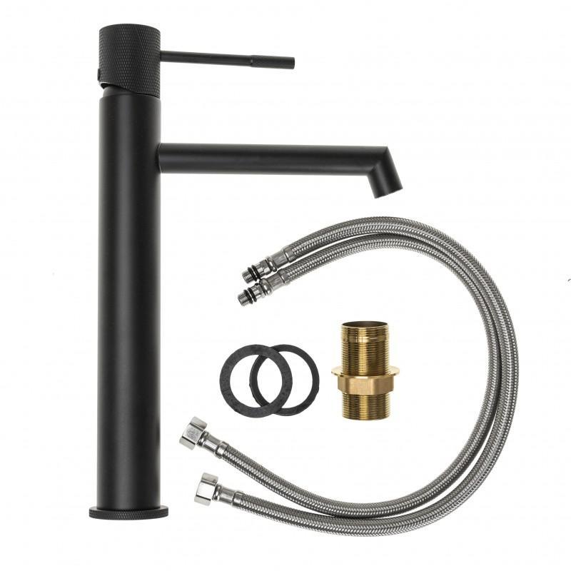Wysoka bateria umywalkowa, stojąca, jednouchwytowa ze stałą wylewką. Ceramiczna wymienna głowica 35 mm.