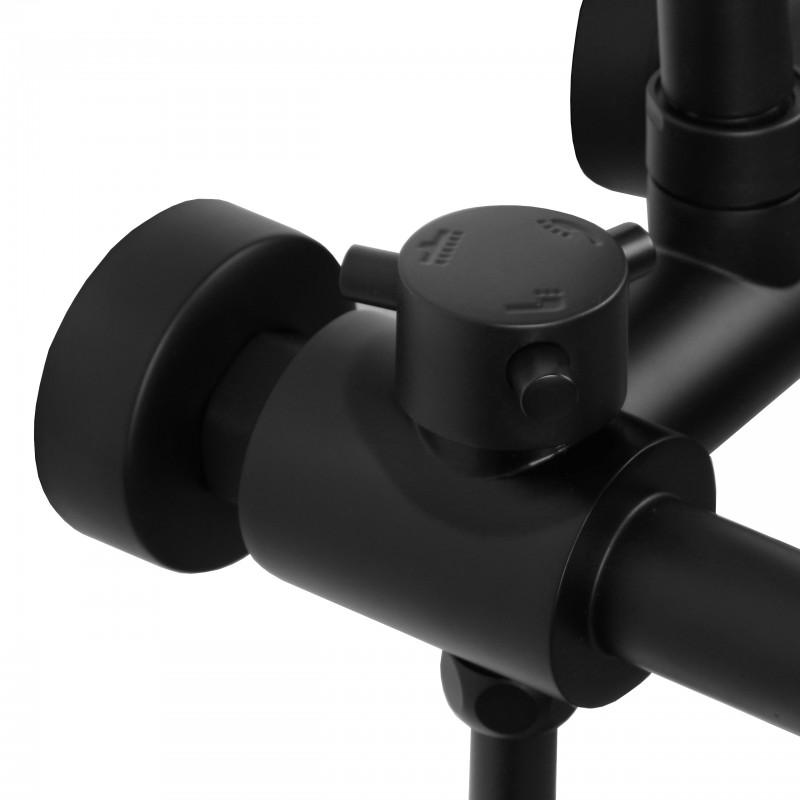 Bateria z mieszaczem temperatury, regulacją i przełącznikiem strumienia wody między deszczownicą, a słuchawką. Ceramiczna głowica baterii (35 mm) gwarantuje trwałość i wytrzymałość.
