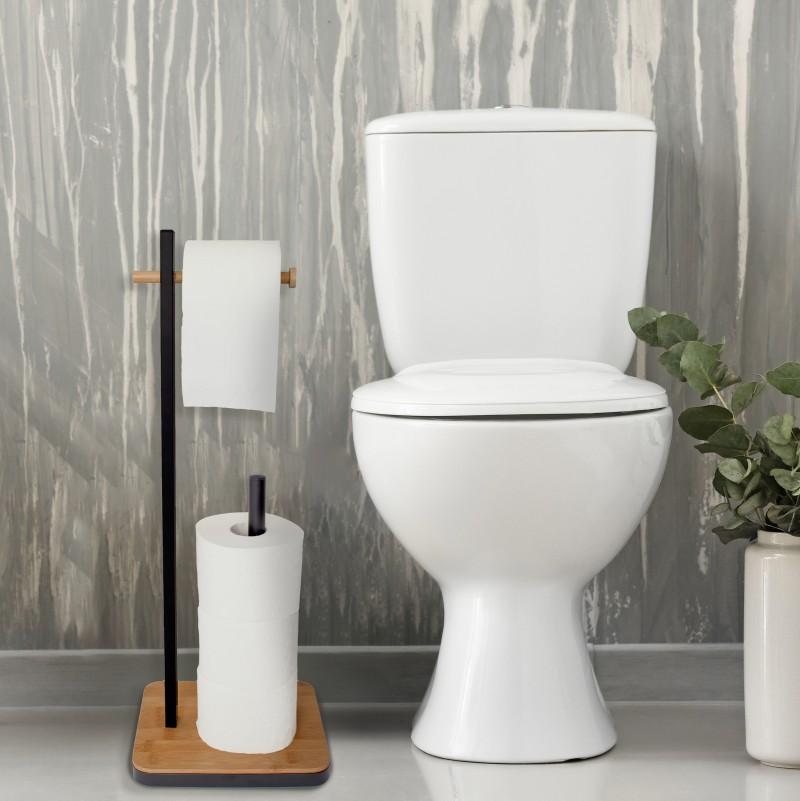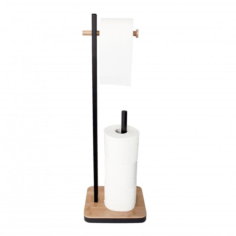 Stojak na papier toaletowy / uchwyt / wieszak WC z zapasem (czarny, bambus) - Yoka