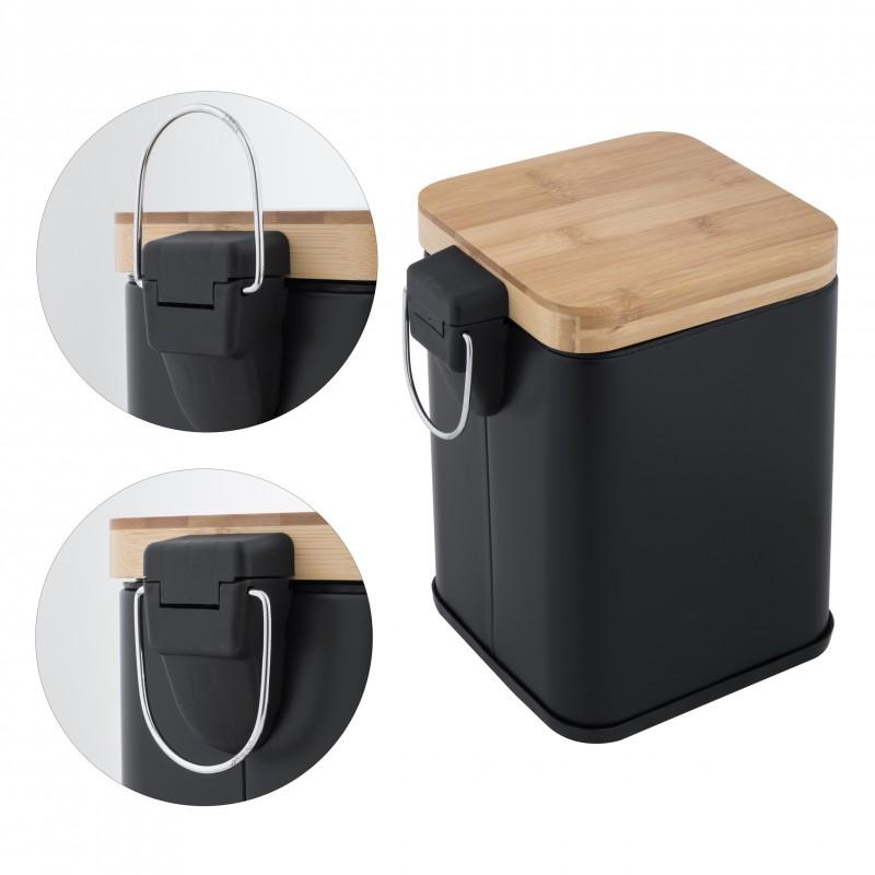 Kosz na śmieci do łazienki / biura z pedałem (bambus, czarny, kwadratowy) - Yoka