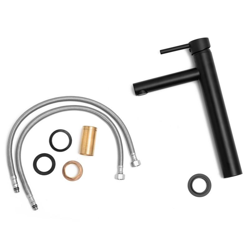 Wysoka bateria umywalkowa, stojąca, jednouchwytowa ze stałą wylewką w kolorze czarnym. Doskonałą jakość czarnej powierzchni gwarantuje nowoczesna technologia malowania proszkowego. Ceramiczna głowica zapewnia wieloletnią trwałość i wytrzymałość.