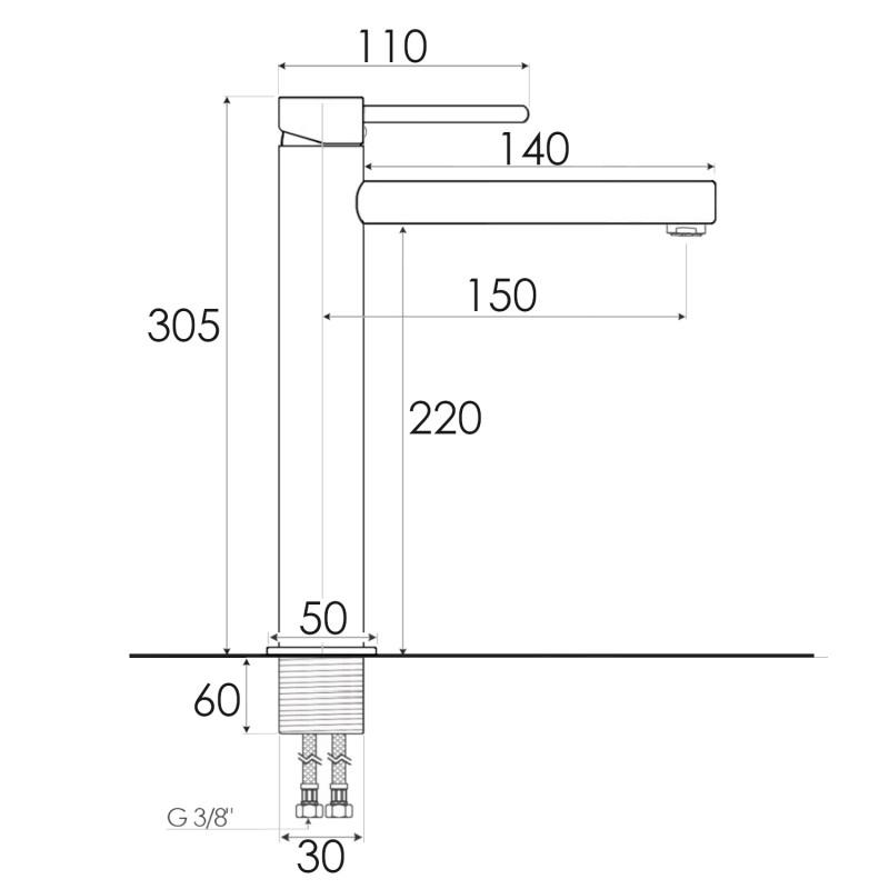 Zestaw zawiera 2 wysokiej jakości wężyki w oplocie ze stali nierdzewnej o długości 50 cm ze standardowym przyłączem 3/8 cala oraz komplet akcesoriów do montażu baterii.
