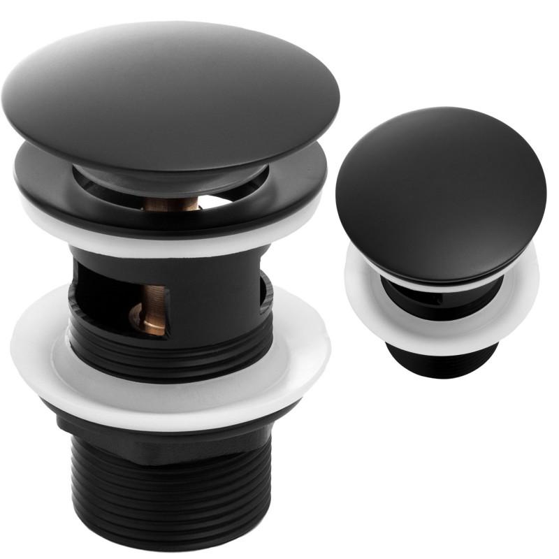 Korek klik-klak automatyczny do umywalki z przelewem wykonany z MOSIĄDZU , malowanego proszkowo na kolor czarnym.