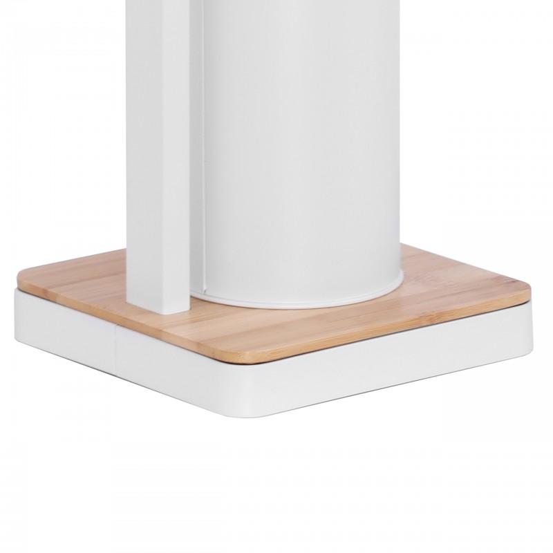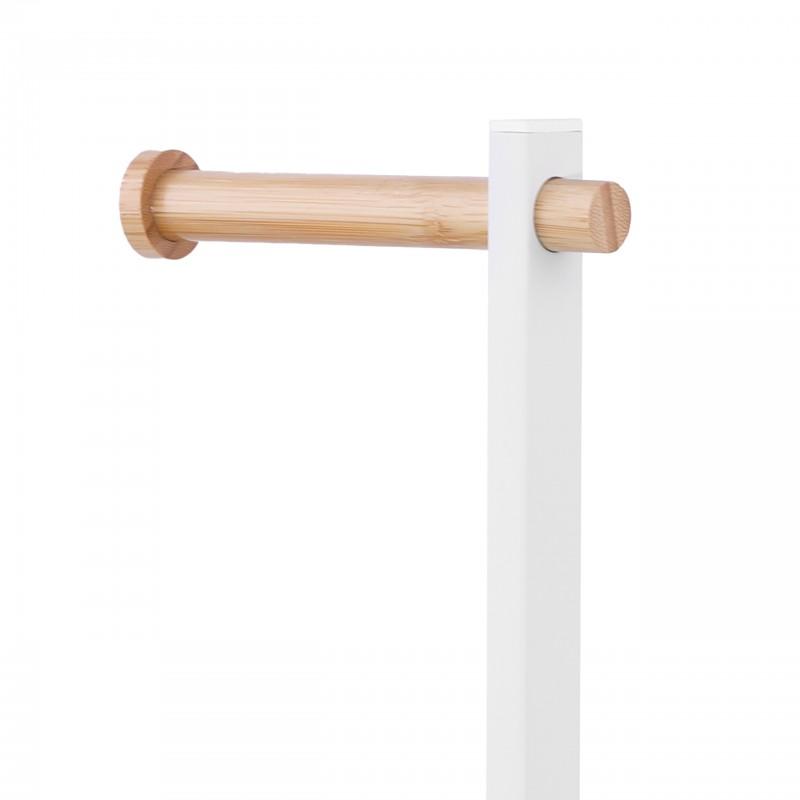Wolnostojąca szczotka WC ze zintegrowanym uchwytem na papier toaletowy. Stojak wykonany jest z wysokiej jakości stali malowanej na biało. Podstawa i uchwyt na papier z naturalnego drewna bambusowego. Szczotka posiada zabezpieczający plastikowy pojemnik chroniący przed rdzewieniem i ułatwiający czyszczenie. Szeroka podstawa, wykończona stalowym białym obramowaniem zapewnia doskonałą stabilność. Doskonałe wyposażenie każdej toalety. Idealnie sprawdzi się we wnętrzu urządzonym w stylu klasycznym, nowoczesnym lub skandynawskim.
