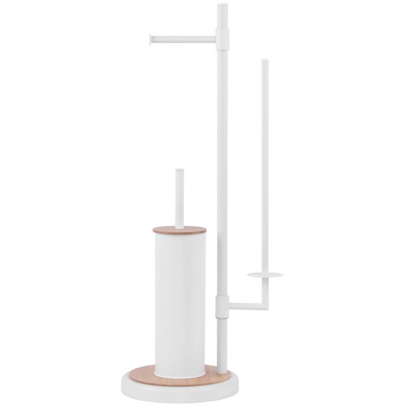 Elegancki stojak na zapasowy papier toaletowy wraz ze szczotką WC oraz z uchwytem na dodatkową rolkę. Stojak wykonany z wysokiej jakości stali malowanej proszkowo oraz elementami bambusa. Szeroka podstawa oraz podkładki z tworzywa sztucznego zapewniają doskonałą stabilność. Doskonałe wyposażenie każdej toalety. Idealnie sprawdzi się we wnętrzu urządzonym w stylu klasycznym, nowoczesnym lub skandynawskim.