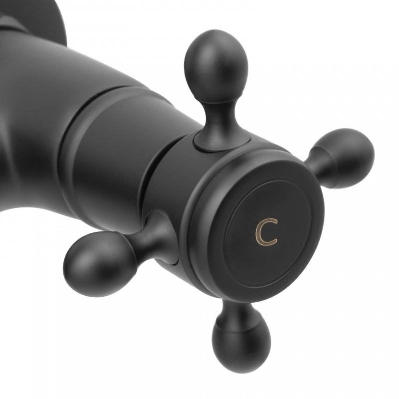 Zestaw prysznicowy w stylu retro z baterią dwuuchwytową oraz przełącznikiem strumienia wody między deszczownicą, a słuchawką. Doskonałą jakość czarnej powierzchni gwarantuje nowoczesna technologia malowania proszkowego. Zestaw zawiera oryginalną deszczownicę o średnicy 21 cm oraz słuchawkę prysznicową z nowoczesnym systemem ANTI-CALC - zapobiegającym osadzaniu się kamienia.