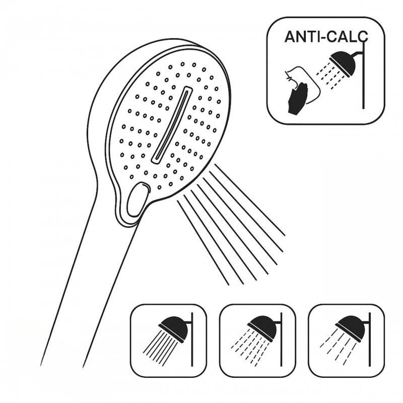 Wykonana z wysokiej jakości, lekkiego i wytrzymałego tworzywa ABS, jest odporna na uszkodzenia i łatwa w utrzymaniu czystości. Zastosowany system Anti-Calc skutecznie zapobiega osadzaniu się kamienia, przedłużając żywotność produktu oraz zapewniając niezmiennie mocny i równomierny strumień wody.