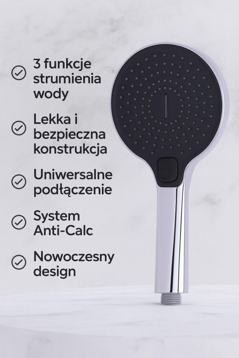 ➣ Zestaw natryskowy – trzyfunkcyjna słuchawka prysznicowa