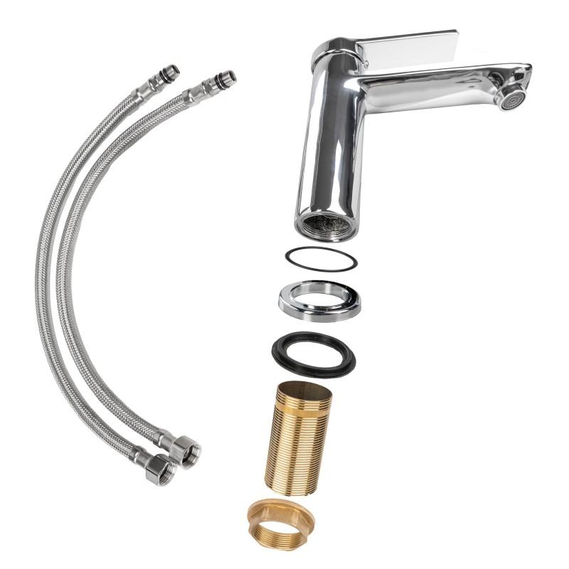 ✅ Dwa węże przyłączeniowe 40 cm (F 3/8") – w oplocie ze stali nierdzewnej, gotowe do podłączenia.
