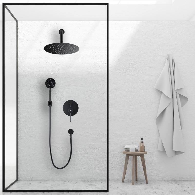 Nowoczesny zestaw prysznicowy podtynkowy z deszczownicą oraz słuchawką prysznicową w czarnym, matowym kolorze. Zawiera baterię mechaniczną podtynkową z mieszaczem wody oraz mechanicznym przełącznikiem strumienia wody deszczownica / słuchawka . W zestawie znajduje się podtynkowy box przyłączeniowy do wody umożliwiający precyzyjny montaż panelu zewnętrznego na płytkach ceramicznych. Design zestawu został podporządkowany najnowszym trendom - prezentuje się niezwykle elegancko i idealnie pasuje do nowocześnie urządzonej łazienki.