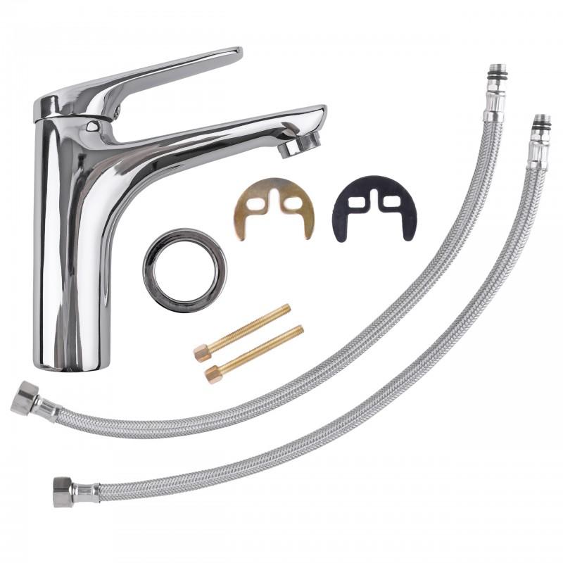 Zestaw zawiera 2 wysokiej jakości wężyki w oplocie ze stali nierdzewnej o długości 40 cm ze standardowym przyłączem 3/8 cala oraz komplet akcesoriów do montażu baterii.