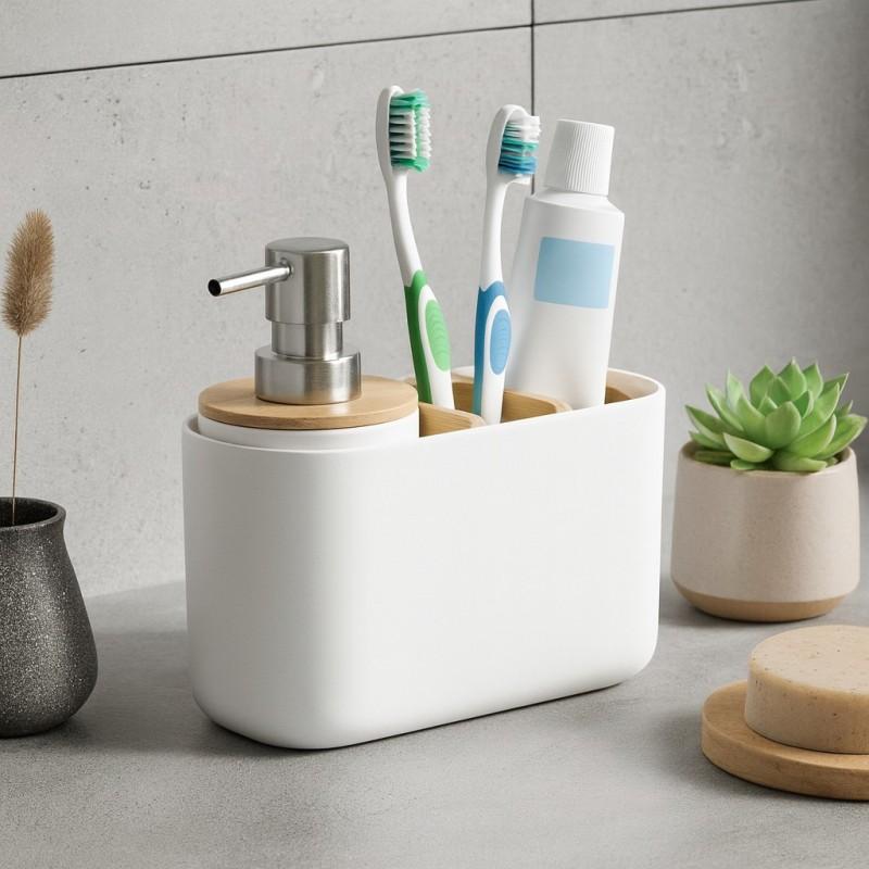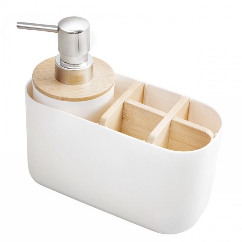 Zestaw łazienkowy biały bambus kubek na szczoteczki i dozownik na mydło w płynie - Yoka