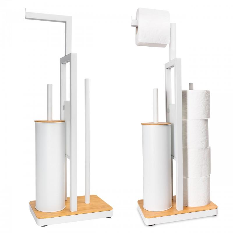 Stojak uchwyt wieszak na papier toaletowy i szczotkę do WC biały bambus - YOKA HOME