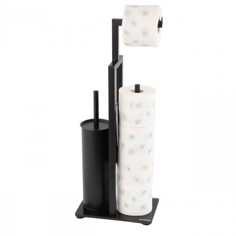 Stojak na papier toaletowy i szczotkę WC 3w1 czarny - Yoka