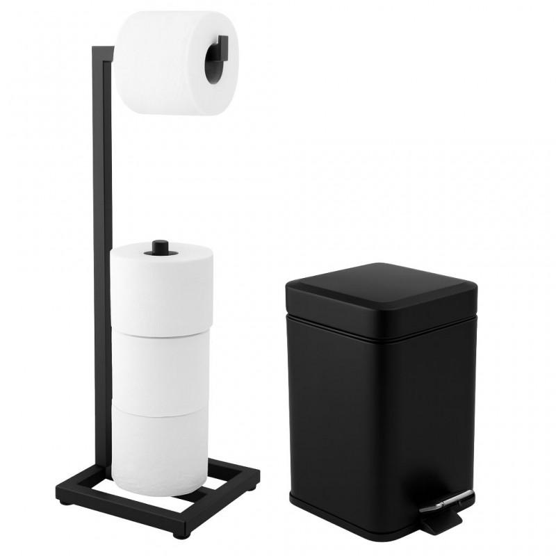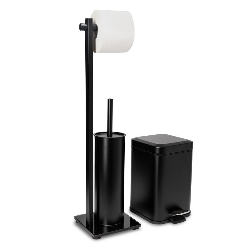 Zestaw łazienkowy kosz na śmieci i Stojak na papier toaletowy i szczotkę do WC - czarny - Yoka