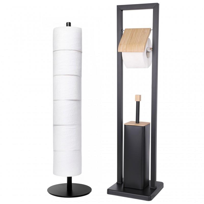 Stojak na szczotkę i papier toaletowy, czarny bambus