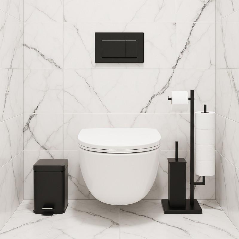 Zestaw łazienkowy: Kosz na śmieci z cichy domyk Stojak z uchwytem na papier toaletowy czarny - Yoka Home