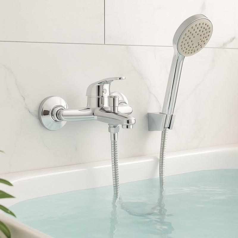 Bateria wannowa ścienna zestaw prysznicowy kran chrom funkcyjna słuchawka- Yoka