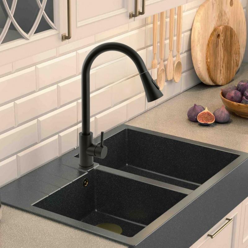 Bateria kuchenna stojąca dwustrumieniowa z wyciąganą wylewką - czarna - Yoka Home