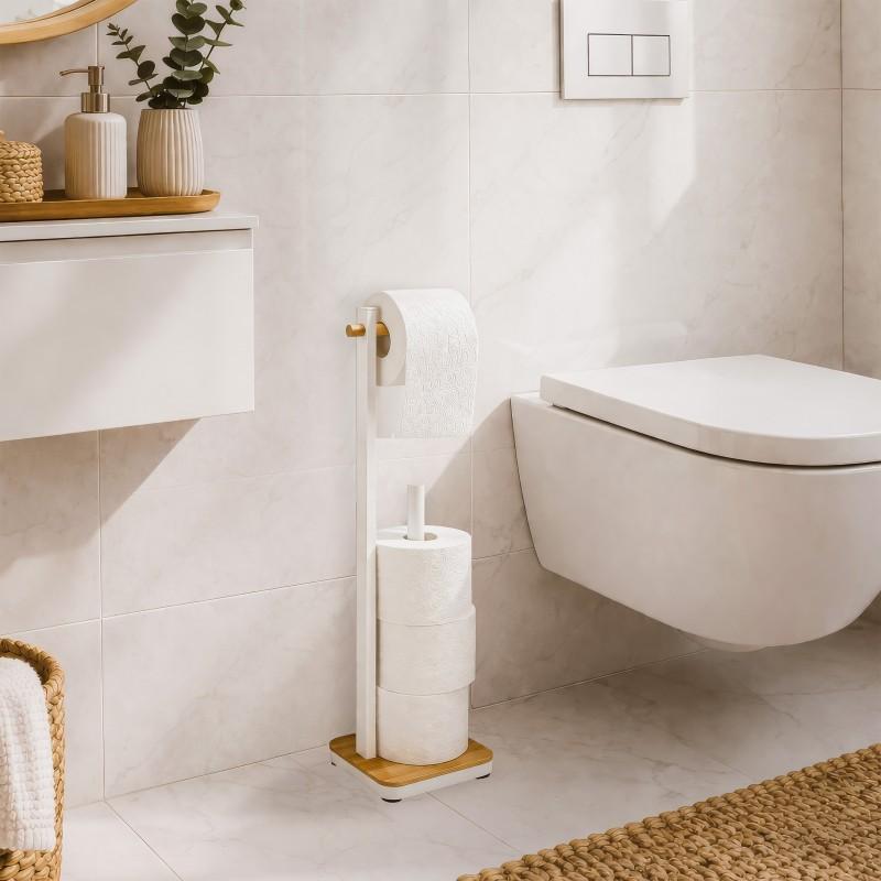 Stojak na papier toaletowy uchwyt wieszak wc zapas biały bambus - Yoka